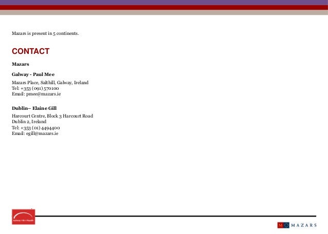 Mazars Graduate Recruitment Team Olwen, Caroline and Vanessa. WHY MAZARS Staff in Dublin & Galway Graduates places available in 2014 6 ON EVERY CONTINENT Countries worldwide. TAX Laura Tax consultant Joined Mazars 2009. 15 ... Fetch Full Source